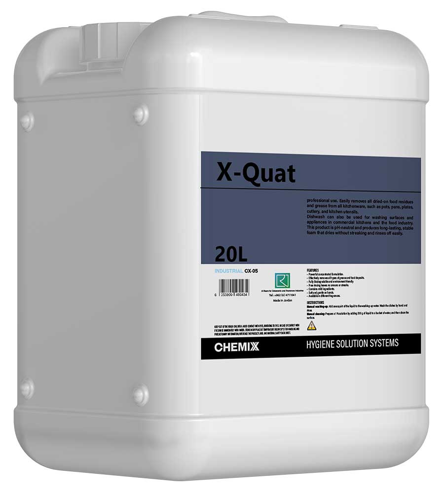 X-Quat can be used in animal and poultry housing facilities and hatcheries, swine producing facilities, equine facilities, ratite facilities, farm premises, calf pens, veal barns, as well as waterers, feeders, hauling and loading equipment, farm vehicles, farrowing barns, nurseries, blocks, creep areas and chutes.